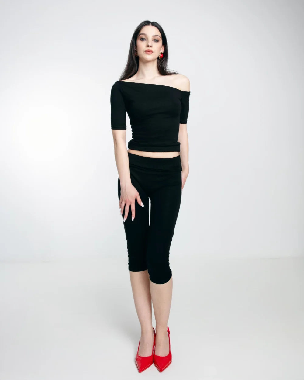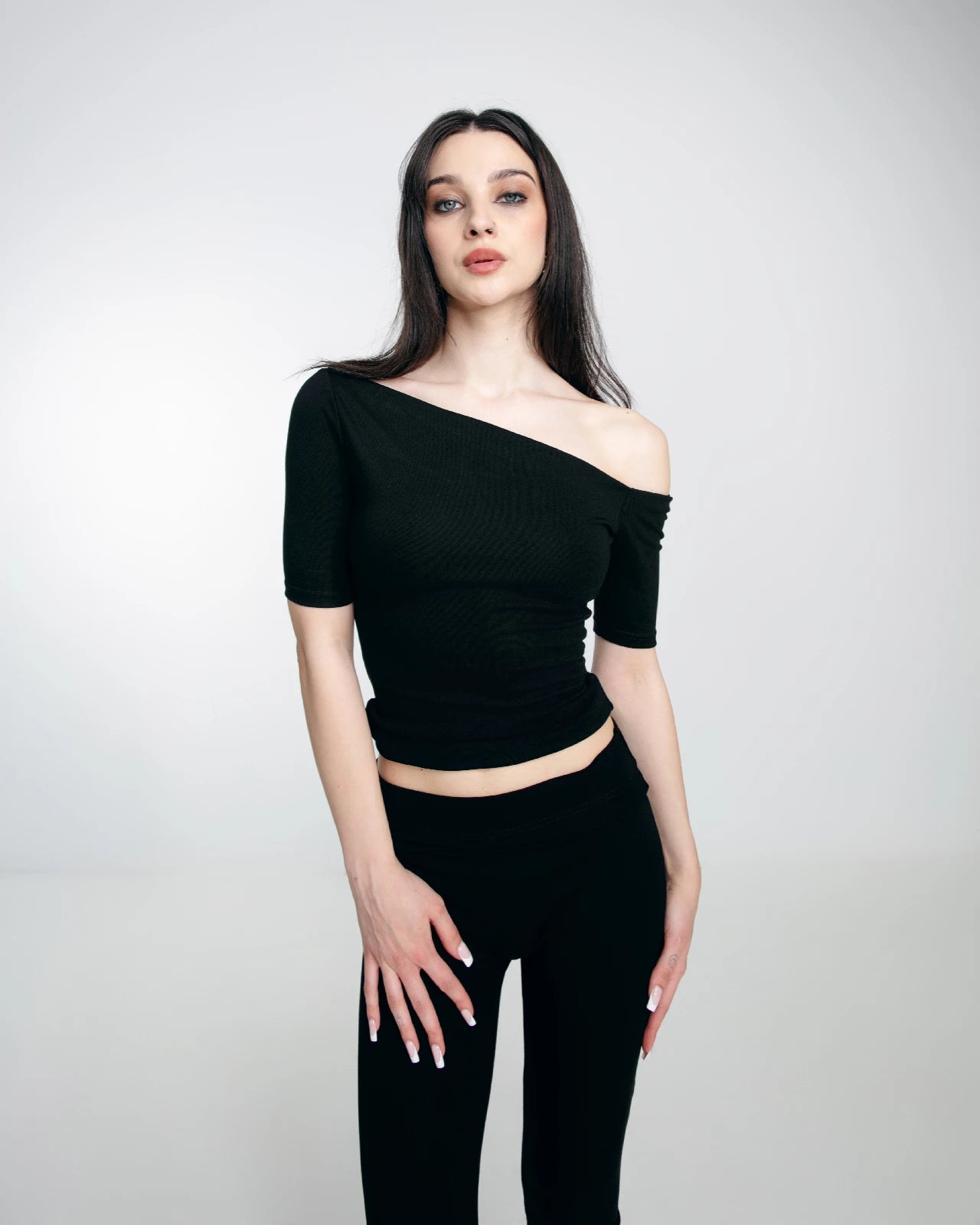 SHORT-SLEEVE ASYMMETRIC TOP BLACK