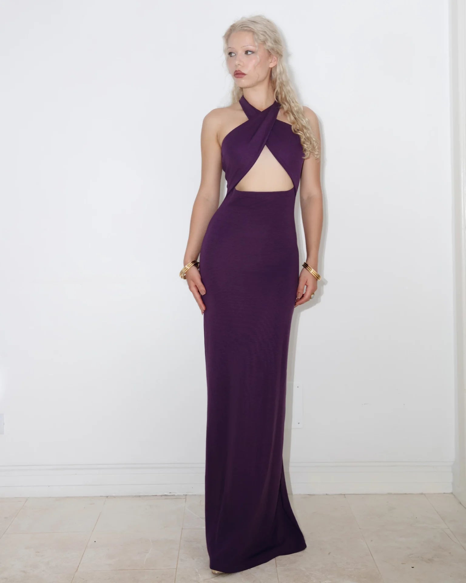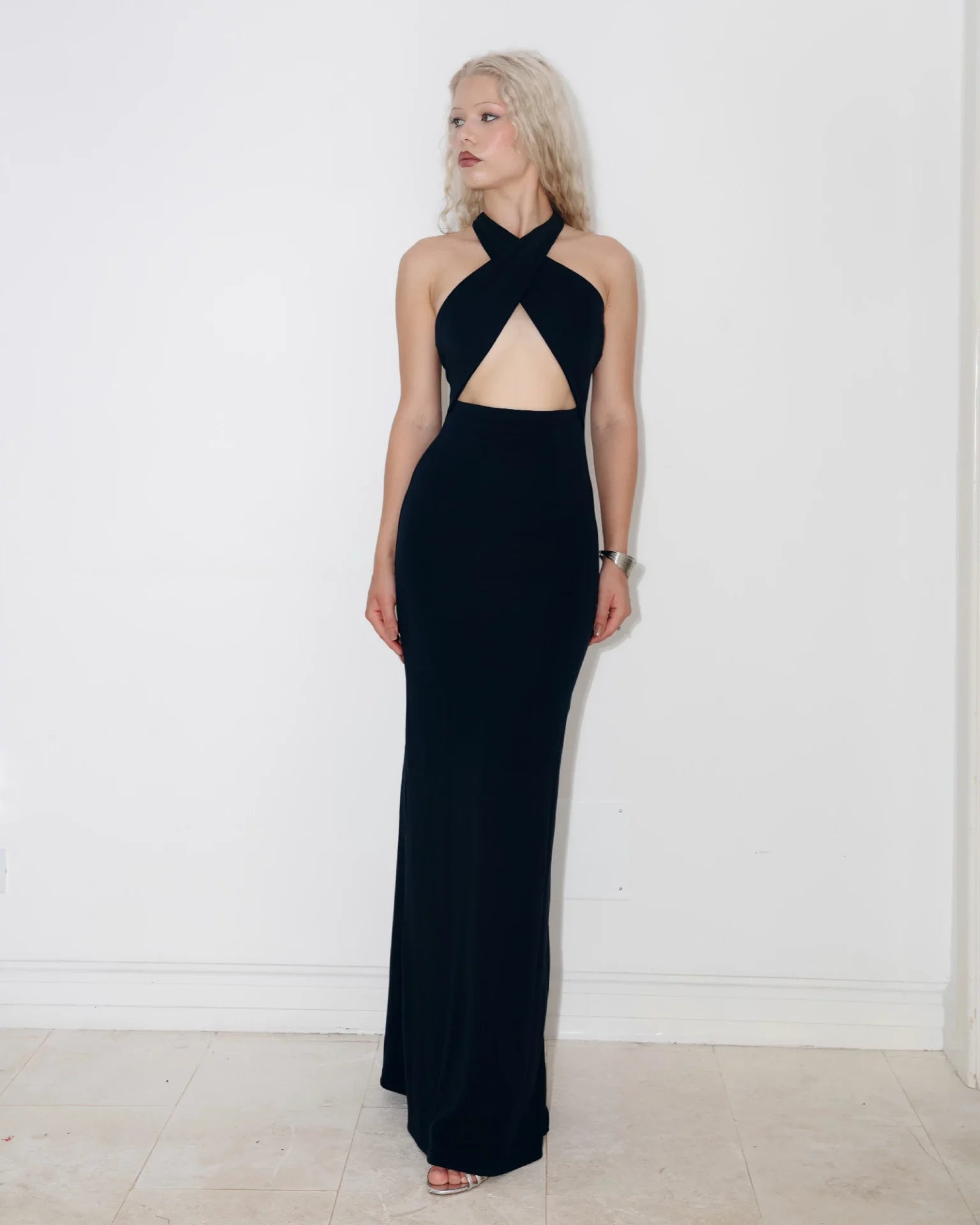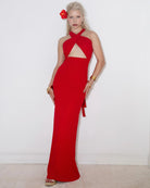 WRAP FRONT HALTER MAXI DRESS