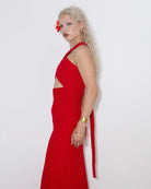 Wyprodukowana w Polsce - sukienka MAXI z wiązanymi elementami na szyi